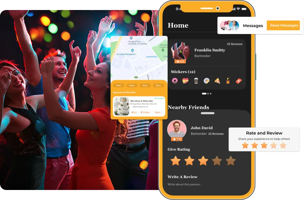 Your social network can lift you up and enable a strong online reputation that helps you find a job, connect with like-minded people, or interact with other single users. We help you find or offer services with professional ratings or meet new people with a compatibility algorithm based on ratings, reviews, and interests.